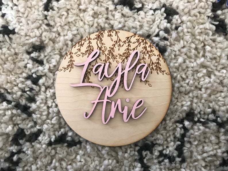 3D Name Annoucement Plaque Laser Cut Wood Photo Prop Sign Designed and Customized