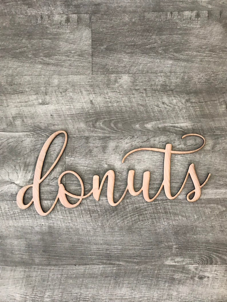 Custom natural wood home or party Decor 'donuts' sign perfect to dress up your dessert table or donut board display.