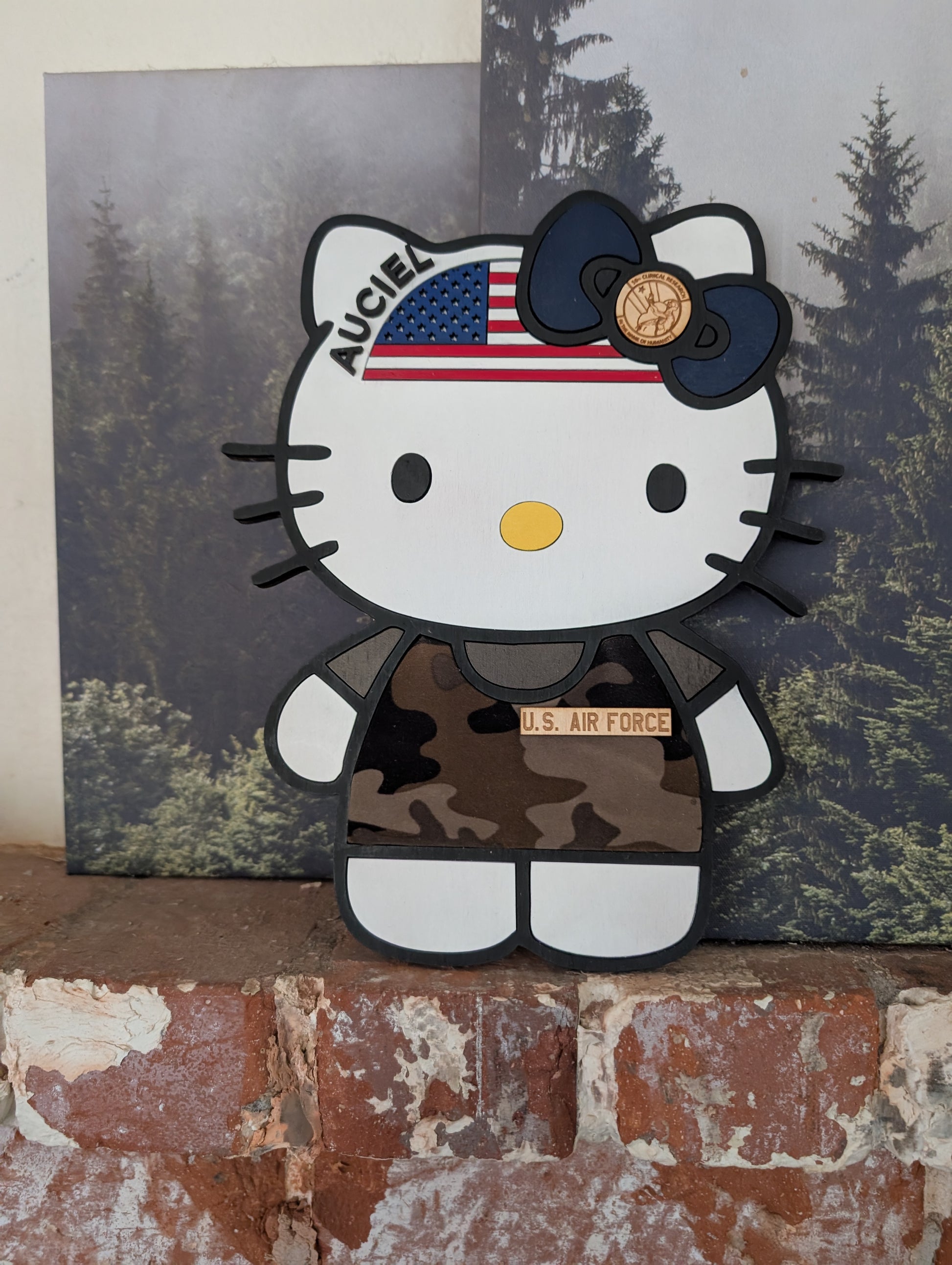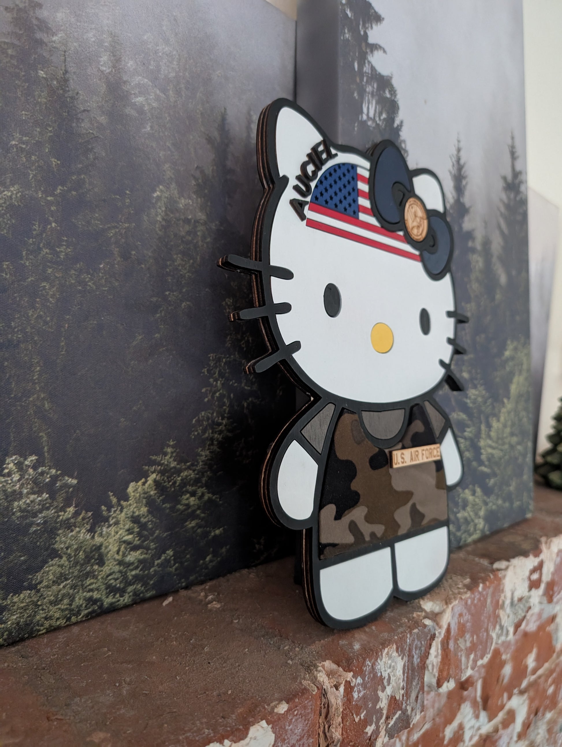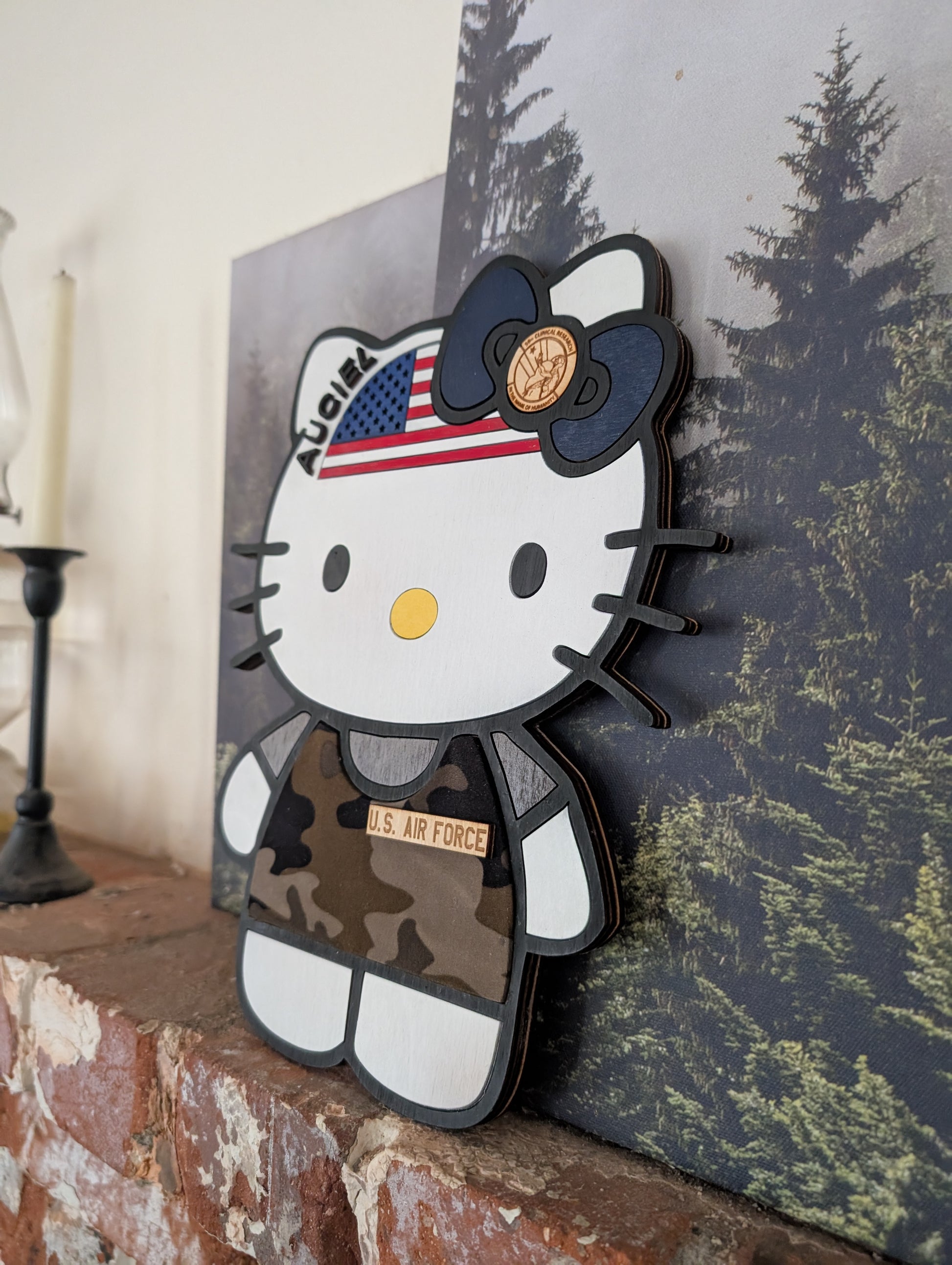 This is cut from wood and comes as pictured. Layered wood. Fabric shirt. Wood US Airforce Badge.