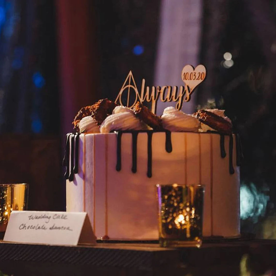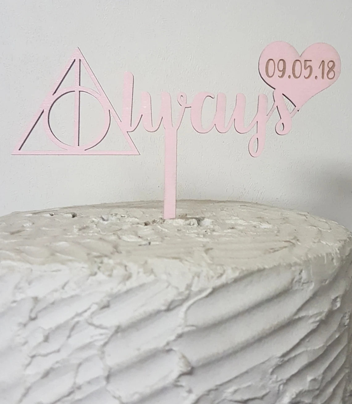 Please keep in mind that you never want your topper wider then your top tier cake size. Unsure? Please ask your bakery/baker before placing the order :)