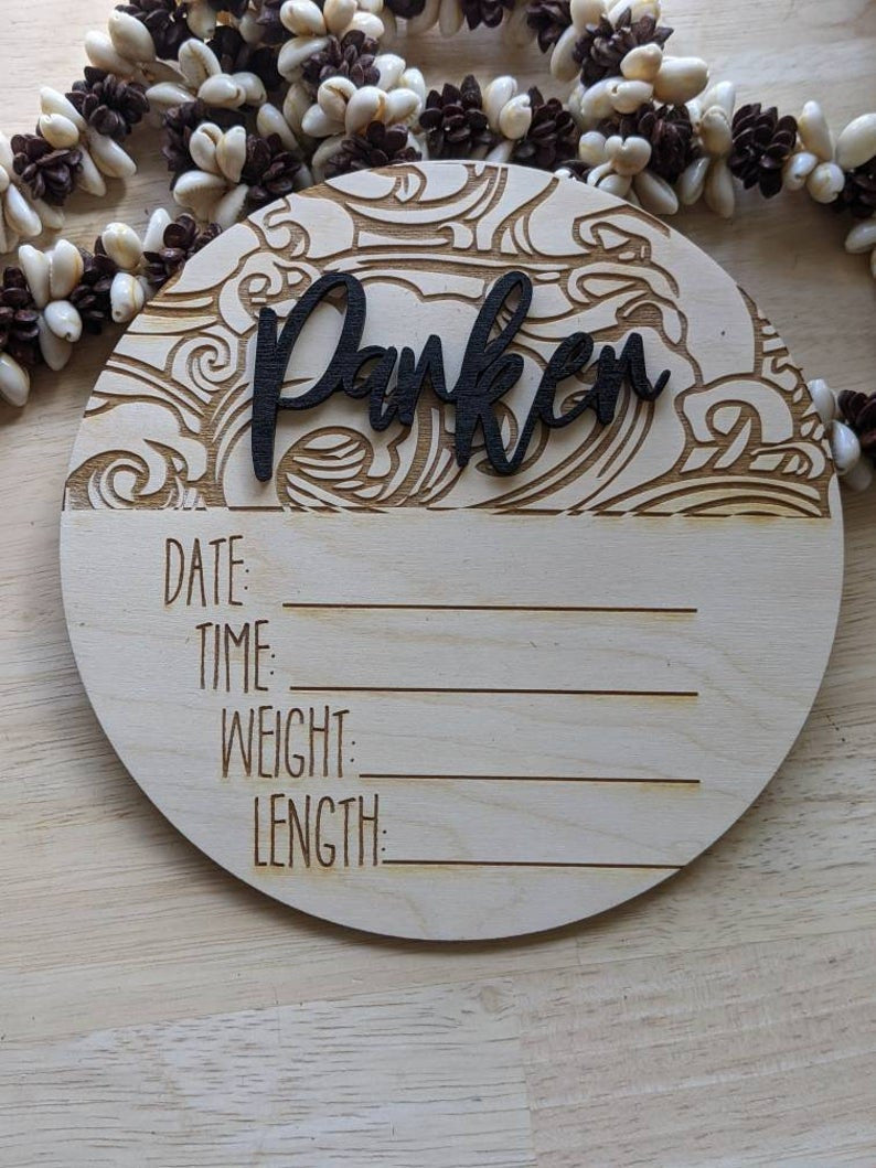 Custom 3D Name with Date Time Weight Length Announcement Plaque Laser Cut Wood Photo Prop Sign Designed and Customized