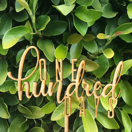 Custom One Hundred Days Baby Celebration Natural Wood Cake Topper