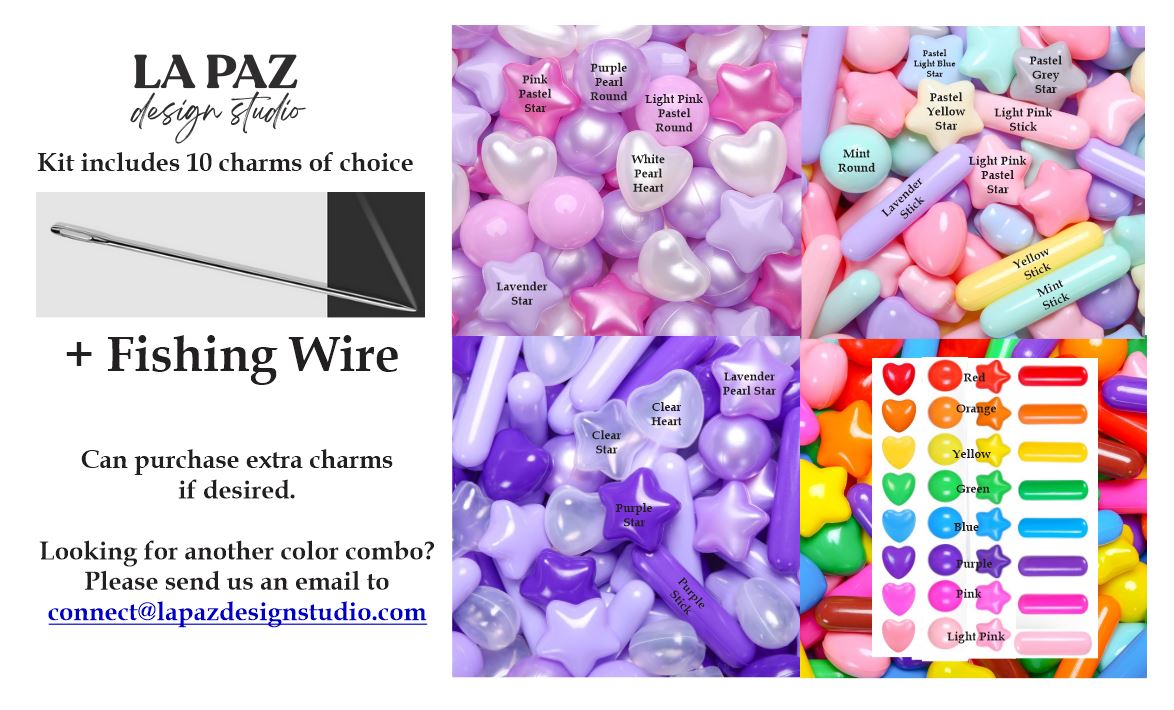 DIY Charm Kit – 10 Charms of Choice (Pastel, Clear, or Bright) + Fishing Wire & Needle
