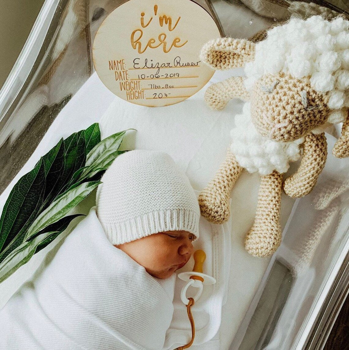 Celebrate your baby’s arrival with our charming “I’m Here Birth Announcement Sign” — a personalized, laser-cut wooden plaque that captures every detail of your newborn’s big debut. Customize it with your baby’s name, birth date, weight, and length, then fill in the info by hand using a pen or pencil for a heartfelt, handcrafted finish.