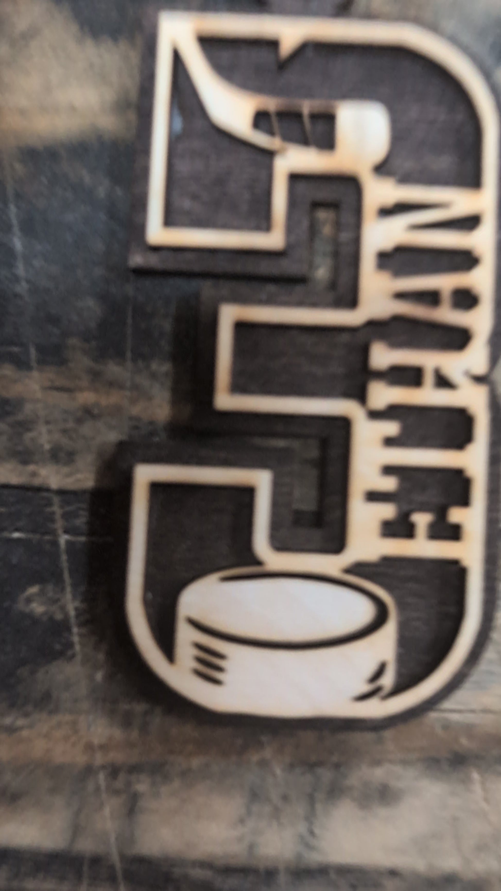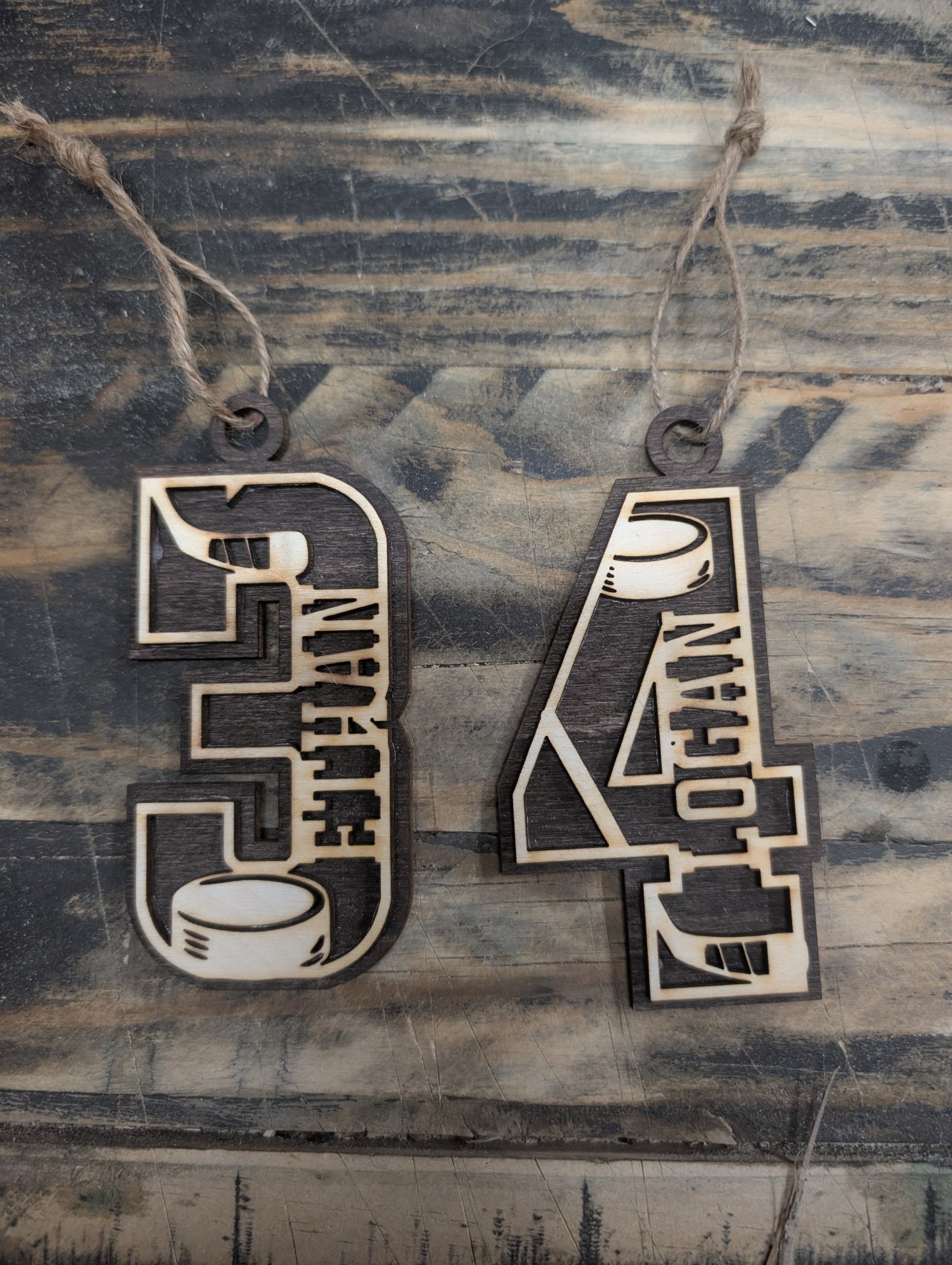 Celebrate your favorite athlete with a personalized Sports Name & Number Tag! Each tag is custom-designed with your player’s name and jersey number, laser-cut from premium 1/8” wood for sharp detail and a clean finish. Measuring 4 inches tall, this custom piece works perfectly as a bag tag, backpack charm, Christmas ornament, locker tag, or team gift.