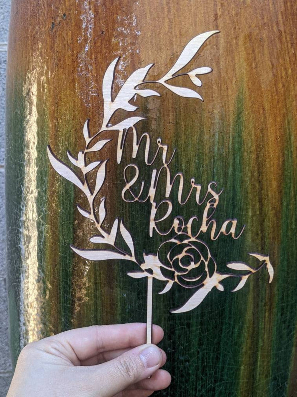 Mr and Mrs Personalized with Last Name in Wreath Cake Topper