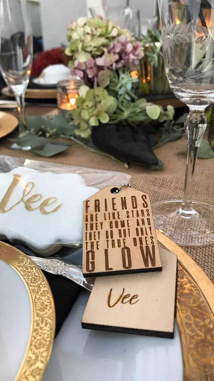 One (1) Custom Friends Come and Go But Only the True One Glow Best Friends Forever Natural Wood Keychain Gift Favor