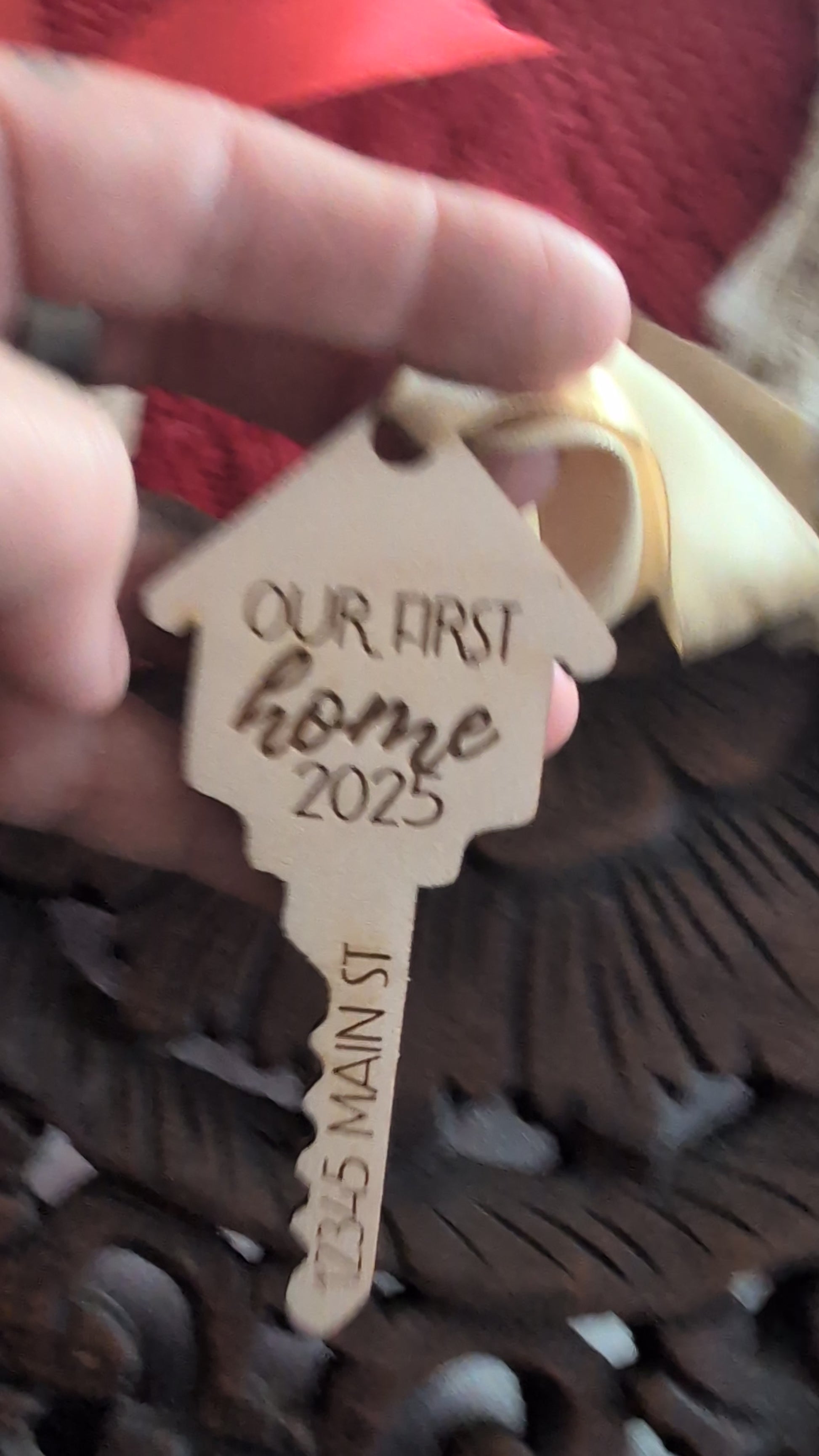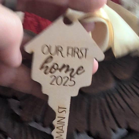Commemorate the joy of a new home with our Our First Home 2025 Key Ornament, beautifully laser-cut and engraved from premium wood. Each ornament features your custom street address, making it a meaningful and personal keepsake for your tree or for gifting.