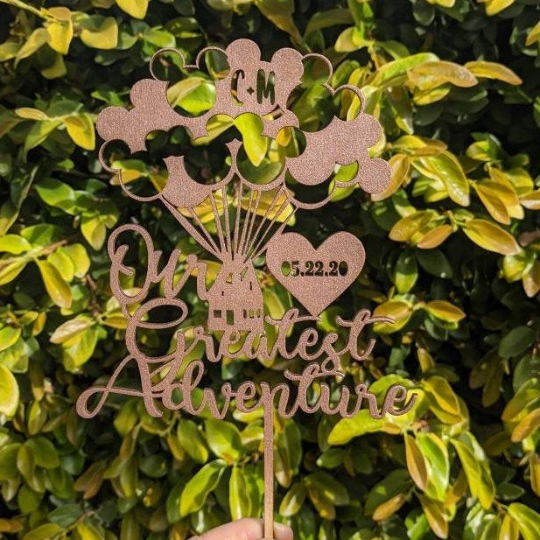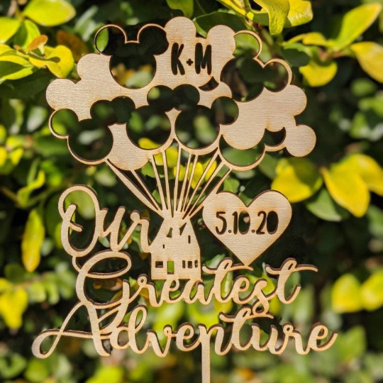 Our Greatest Adventure Up House Wedding Cake Topper With Initial Cut Outs and Date Keepsake Wedding Topper