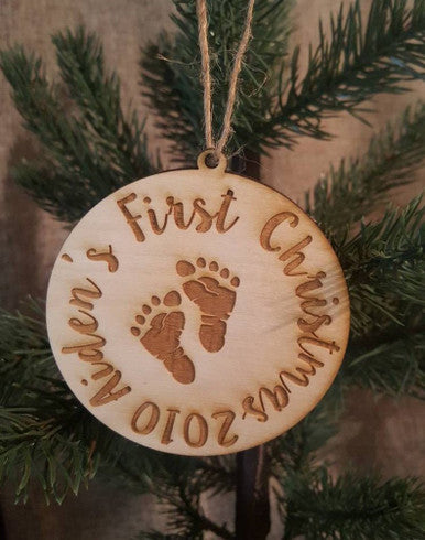 This amazing laser engraved Christmas ornament is the perfect addition to your tree for Baby's First Christmas.