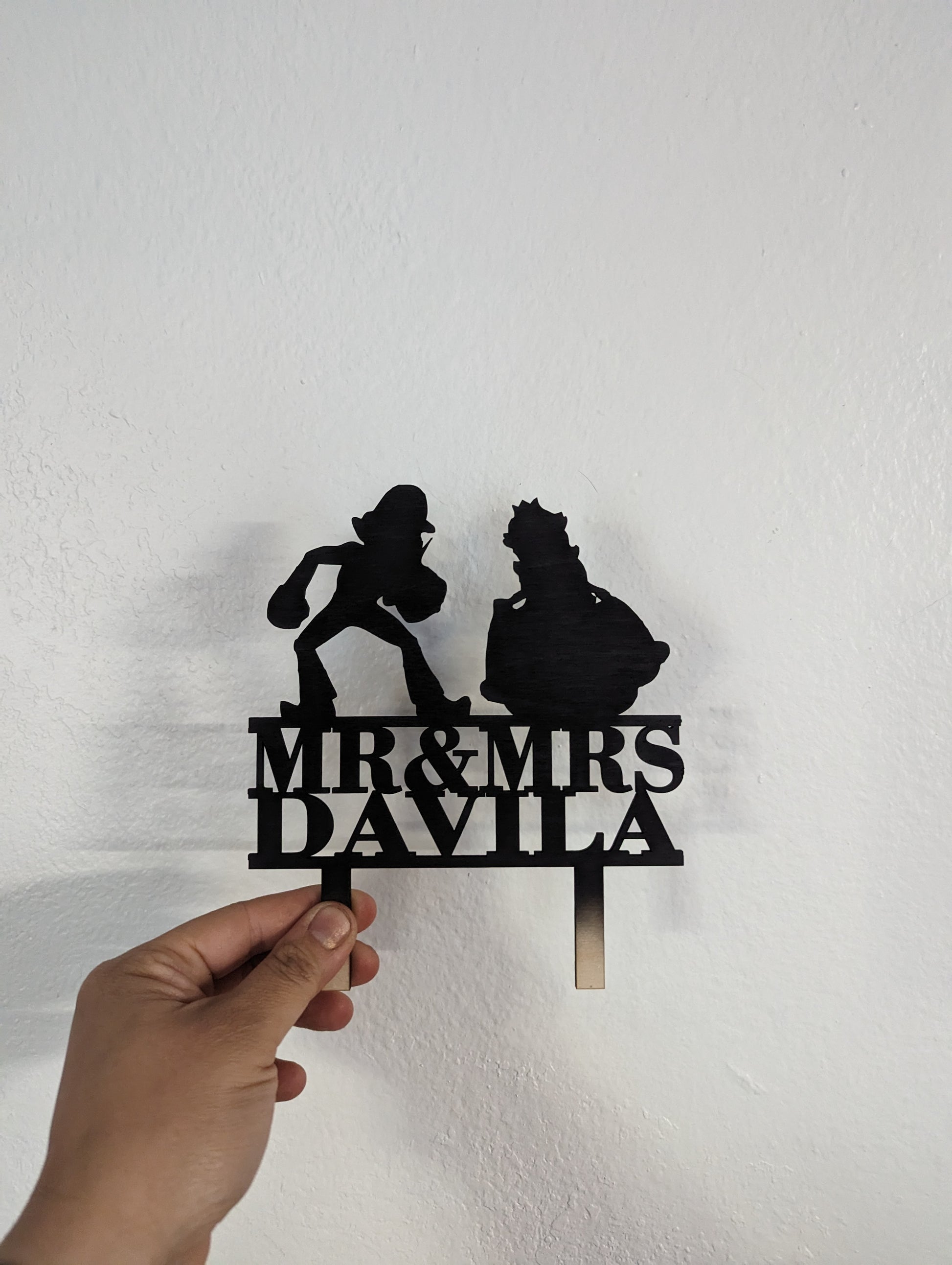 Personalized Gamer Couple WaLuigi and Peach Last Name Cake Topper