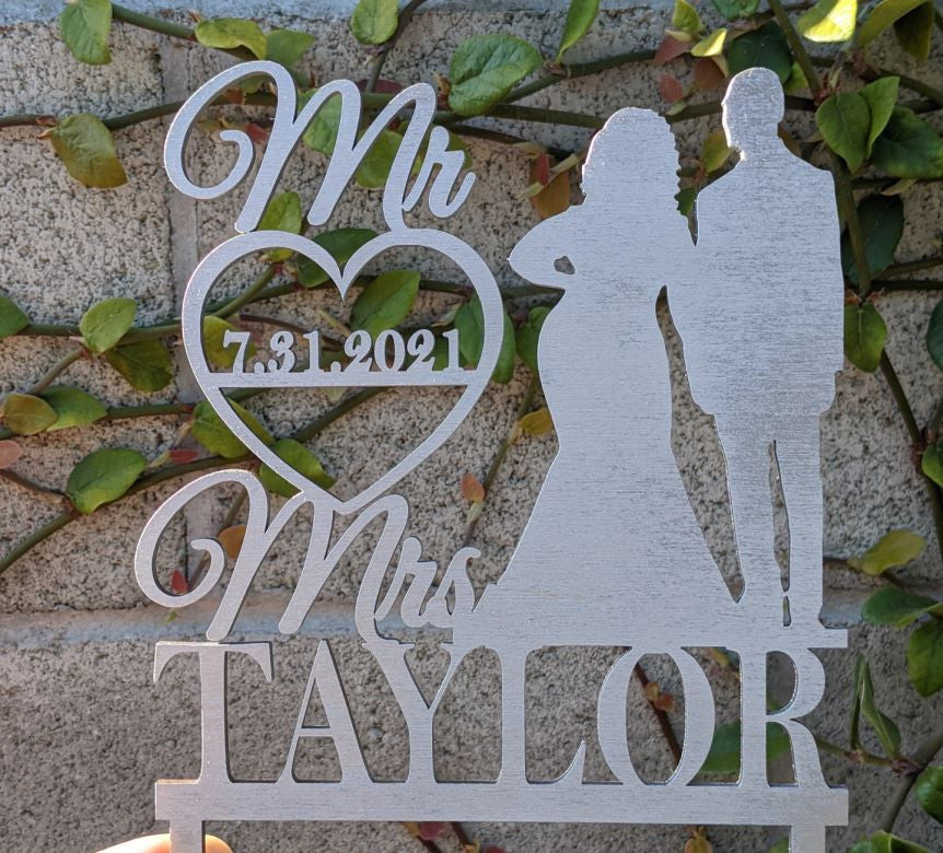 Personalized Mr & Mrs Last Name + Date Wedding Cake Topper