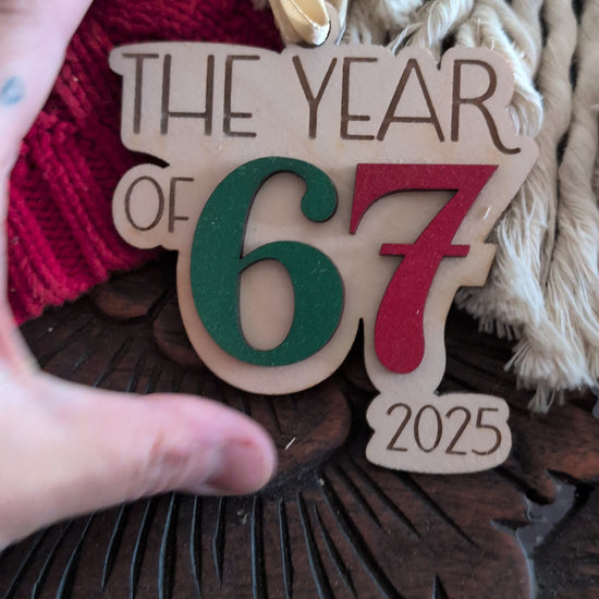 Celebrate 2025’s biggest viral trend with our “The Year of 67” Ornament, inspired by the popular 6-7 slang phrase circulating across TikTok and social platforms. Whether it’s an inside joke in your home, your teen’s favorite meme, or just a funny keepsake, this ornament brings the trend straight to your tree.