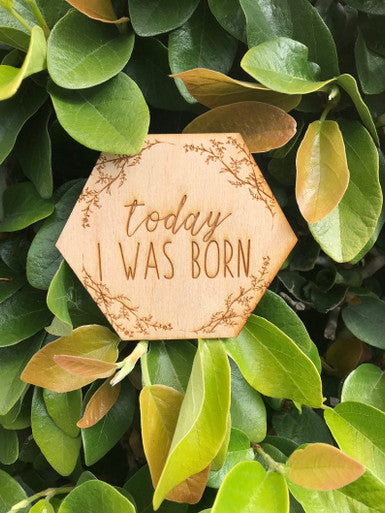 Today I Was Born Engraved Announcement Plaque Laser Cut Wood Photo Prop Hexagon Sign