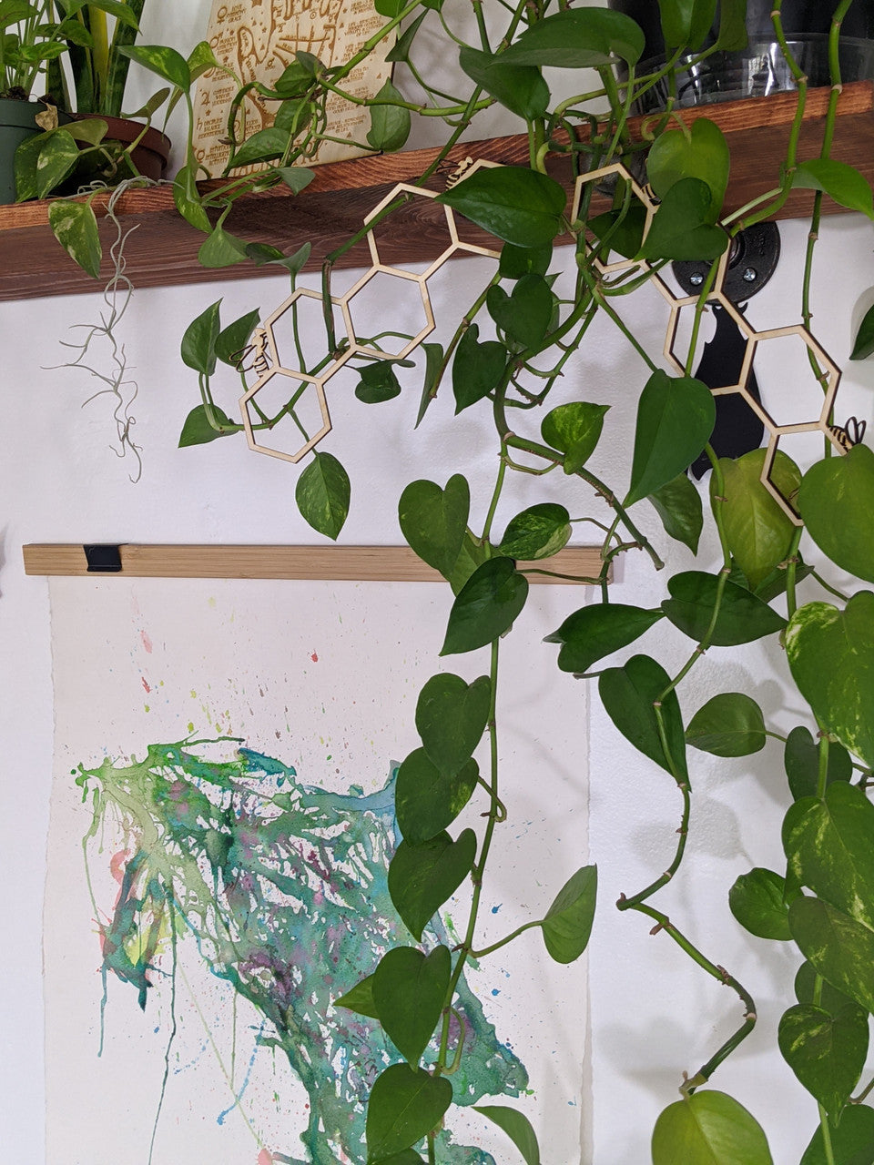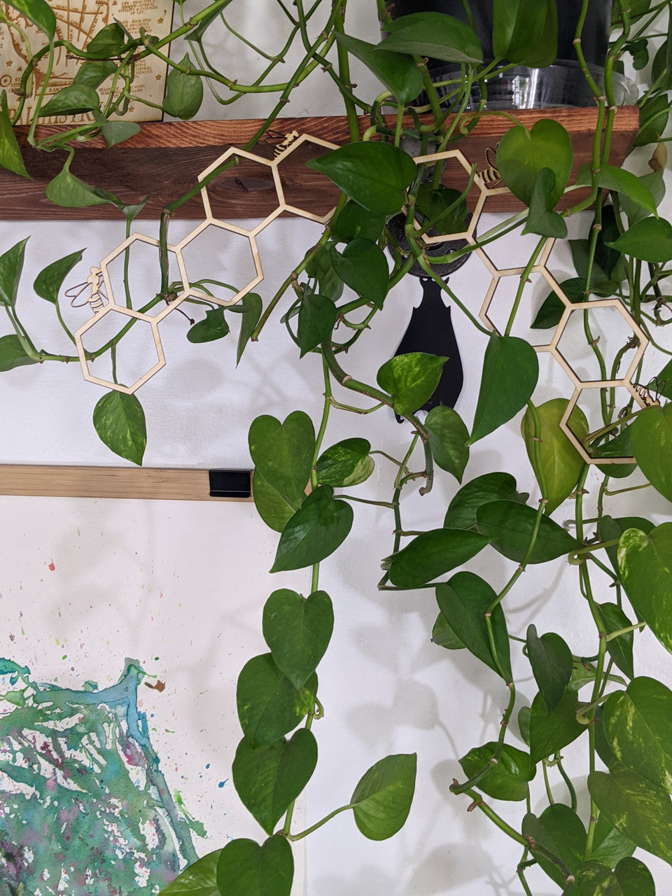 Wood or Metal Option Honeycomb Hanging Trellis Indoor Plant Support | Honey Comb Plant Support | Shelf Decoration Small Potted Plant Trellis