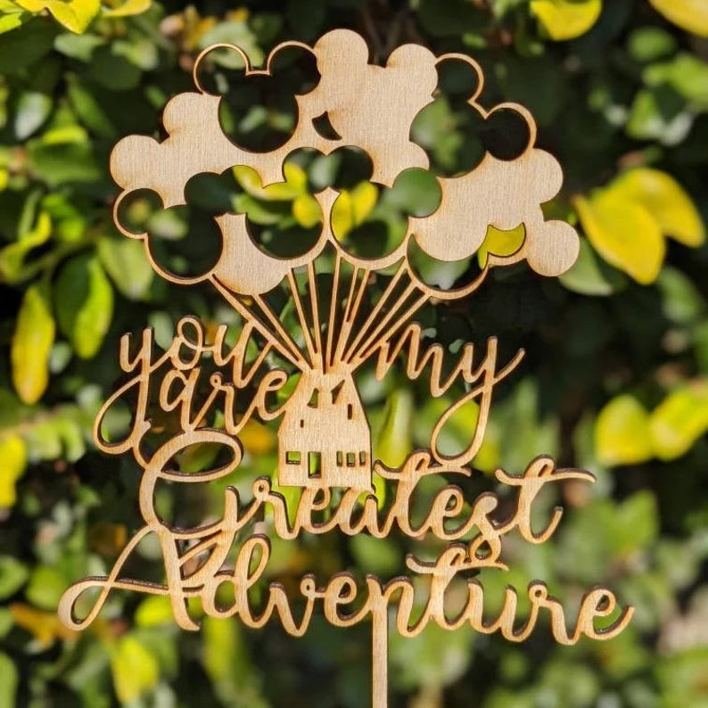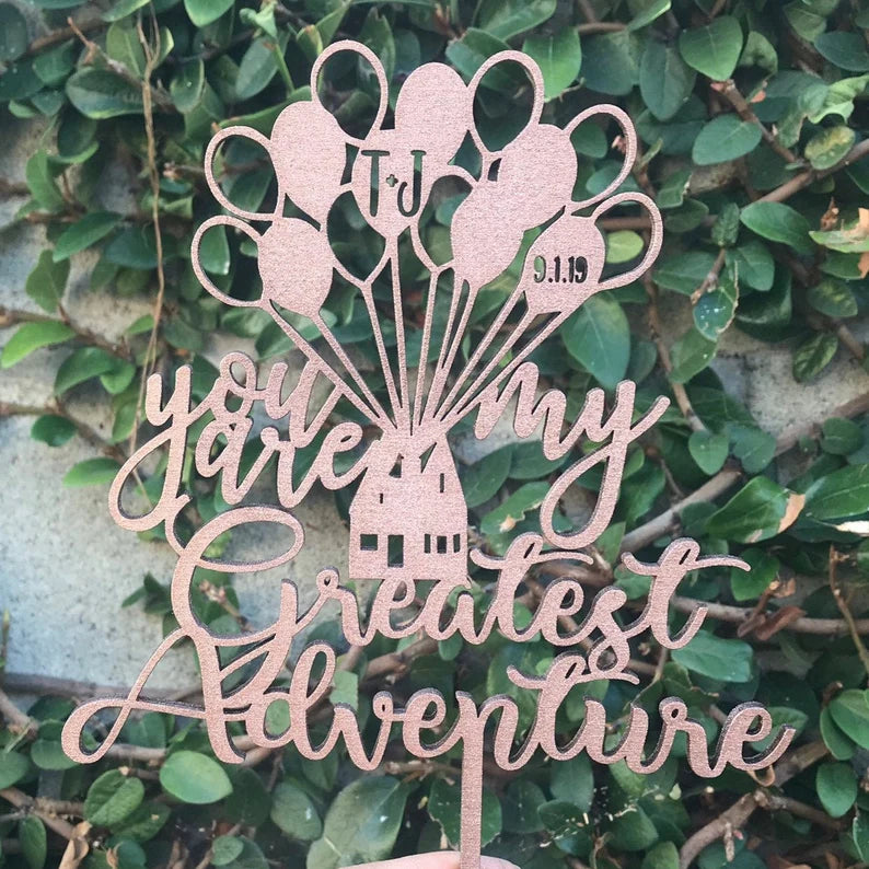 You Are My Greatest Adventure Up Balloons House Wedding Cake Topper With Initial Cut Outs and Date - Keepsake Wedding Cake Balloon Toppers